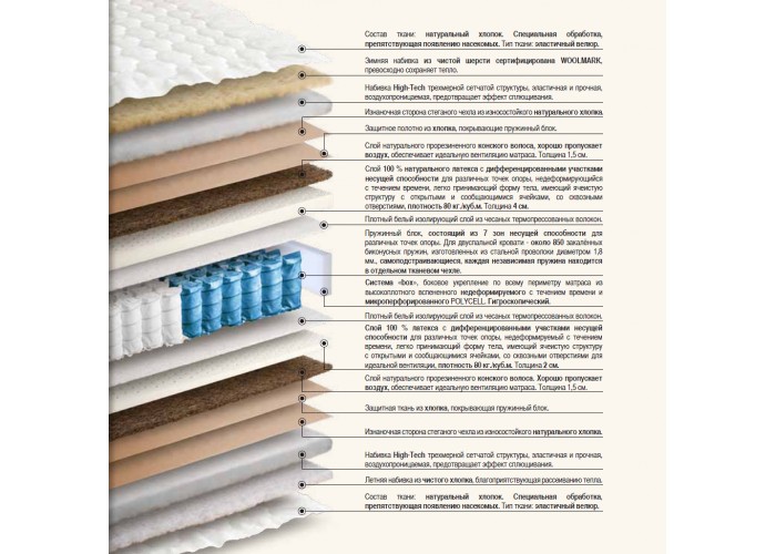 Шерсть Меринос, конский волос, латекс, трехмерная набивка High-Tech